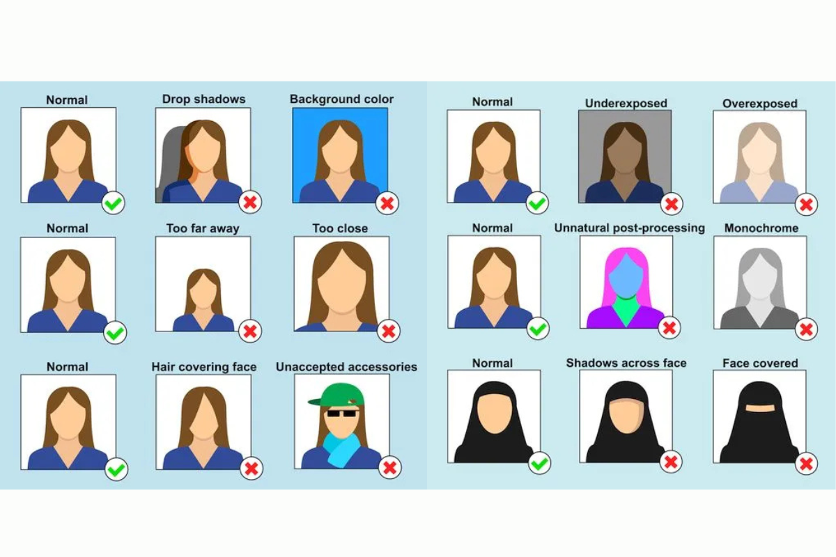 You may not make any computer alterations to the photo, such as Photoshop editing or the application of social media filters (never use a selfie, either). The picture must be well lit so that there are no shadows on your face.